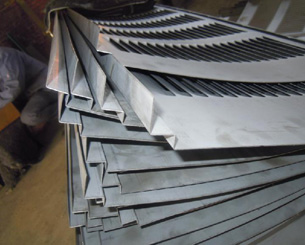 2.穿孔鋁板壓型吸音板 A.鋁型材穿孔吸音板必須在待安裝的場所內放置48小時,以便吸音板適應室內環(huán)境而定型。 B.施工前核對吸音板的型號、規(guī)格尺寸和數量。